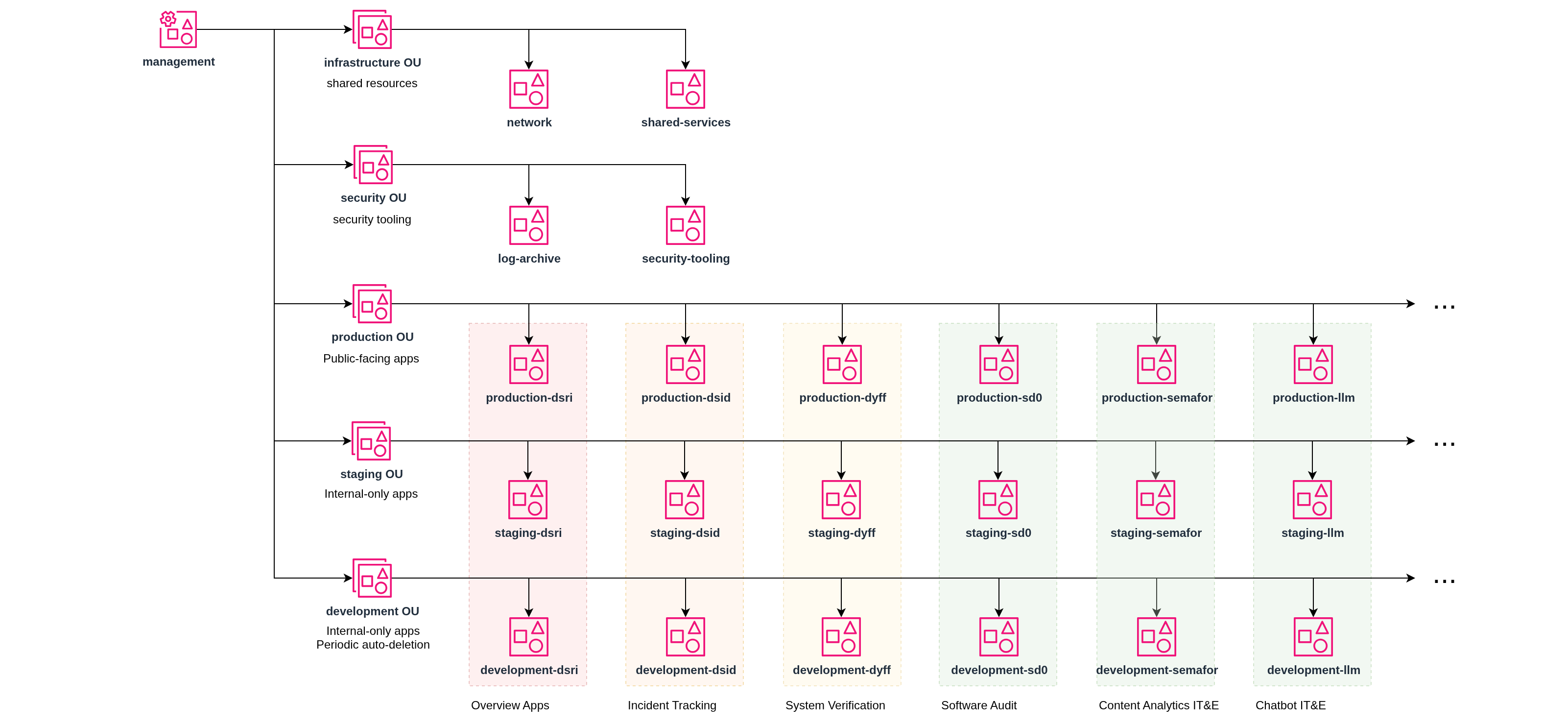 Workload OU provide deployment environments with differing readiness levels and baselines